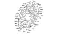 駆動装置50はまた、駆動装置50から後向きに延びる割出し盤駆動アーム54を含む。この割出し盤駆動アーム54は、ばねタイプ材料、例えばステンレススチール製であって、アーム54の遠位端に取り付けられたボタン58が、駆動装置50が前端48に向けて進められるときには、割出し盤40の半径方向に延びる溝60A〜Jの一つの中を移動し、駆動装置50が上側ケース34の後端46に向けて戻されるときには、割出し盤40の曲線状に延びる溝80A〜Jの一つの中を移動することができるようになっている。