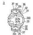 しかしながら、このように雄部材72に保持された保持部材78を雄部材72から外す場合、このままの状態では保持部材78を雄部材72から軸線方向又は軸直角方向に引き抜くことができない。それゆえ、保持部材78の各脚部80を半径方向外方に大きく反り返るように変形させて保持部材78の係止凹部81と雄部材72のリング状突部70との係止を解除した後、保持部材78を雄部材71から軸線方向に引き抜かなければならない。このため、保持部材78の脚部80が大変形に伴い損傷等することがあり、保持部材78の取り外しが容易でないばかりではなく、保持部材78の再利用が困難であった。