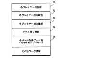 各パネル取得ゲーム数(又は所有プレイヤー)格納領域78には、各パネルを取得するのに必要なプチゲームのクリア回数(規定数)を示すデータが格納される。この回数は、前述したように、パネルを選択したときに実行されるプチゲームをプレイヤーが1つクリアするたびに減ってゆき、0になった時点でそのパネルはこのプチゲームを最後にクリアしたプレイヤーの所有パネルとなる。なお、規定数が0になった以降は、そのパネルの現在の所有者を示すデータが格納される。  Each panel acquisition game number (or owned player)