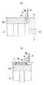 図24は材料保管溝6の底面6aを、造形エリア1に近づくにつれて下り傾斜させた場合を示している。他の構成は図23と同様である。ちなみに、材料保管溝6の底面6aが平坦だと、底面6aが完全に上昇しきるまで材料供給ワイパー2の移動を待つ必要があるが、本例では、材料保管溝6の底面6aを造形エリア1に向かって下り傾斜させたので、図24(a)(b)のように溝テーブル40の上昇と材料供給ワイパー2の移動とを同時に行なうことで、粉末材料Pを造形エリア1上に押し出すことが可能となり、従って、材料供給ワイパー2の移動開始のタイミングを速めることができ、造形時間の一層の短縮化を図ることができる。
