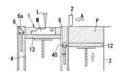 図23は、造形タンク4と材料タンク3との間に底面6aが昇降自在に駆動する材料保管溝6を設け、レーザー焼結時に材料保管溝6内に格納された粉末材料Pを上昇させると共に材料供給ワイパー2を移動させて該粉末材料Pを造形エリア1上に供給する場合の一例を示している。本例では、レーザー焼結時には、図23(a)のように材料供給ワイパー2によって押し出された次層分の粉末材料Pを材料保管溝6に保管しておき、レーザー焼結が完了したときに図23(b)のように材料保管溝6の下方に配置した溝テーブル40が上昇して、材料供給を開始するので、造形エリア1直前に材料供給準備をしたときでも、材料保管溝6に粉末材料Pが格納されることで、粉末材料Pが造形エリア1に流出しないものであり、焼結完了後は速やかに造形エリア1上に材料供給ができ、造形時間を短縮させることができる。
