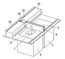 図25は、上記材料保管溝6を造形タンク4の両サイドに設けた場合の例を示している。図25では材料保管溝6の底面6aは平坦面となっているが、図24のように造形タンク4に向かって下り傾斜させてもよいものである。本装置の一例を図30、図31に示している。本装置の溝テーブル40は図30(c)に例示したスライダー装置41によって昇降するものであるが、これに限らず、図30(b)、図31に例示したモータ20及びカム21を用いて昇降させるものであってもよい。材料保管溝6以外の構成は図6と同様である。しかして、造形タンク4の両サイドに設けた材料保管溝6にそれぞれ次層分の粉末材料Pを保管できるので、材料供給ワイパー2の1往復で2回の材料供給を行なうことが可能となり、材料供給ワイパー2を1往復させて1回の材料供給を行なう場合と比較して材料供給ワイパー2の移動距離を短くでき、造形時間をより短縮できる。