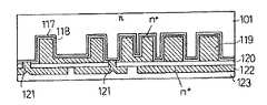 さらに、As,P(リン)を不純物としたn+ポリシリコン122を0.2〜1μmの厚さで形成して、これを所定の電極パターン及びシールド層とする。次に、表面に、例えば絶縁膜であるBGSP膜123を0.2〜1μmの厚さで形成する。そして、このBGSP膜123の表面を平坦化研摩する。