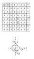 図2の読出画素位置で選択されるG、RおよびB毎のカラーフィルタ位置を図3の(a)〜(c)に示している。図3から明らかなように、G信号は水平方向および垂直方向共に1画素置きに選択され、R信号およびB信号は2つの対角方向に1画素置きに選択されるようになっている。この場合の空間解像度を図4に示している。図4で、「1」はカラーフィルタの無い白黒画像でのナイキスト限界周波数を示している。なお、白黒画像における画素空間周期=Tとすると、画素空間周波数fc=1/Tとなり、ナイキスト周波数fN=fc/2で、これを「1」としている