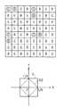 なお、上記実施形態1,2では、1/2間引き読み出しについて説明したが、これに限らず、図8に示すような読出画素位置による1/4間引き読み出しであってもよいし、図9に示すような読出画素位置による1/8間引き読み出しであってもよいし、図10に示すような読出画素位置による1/16間引き読み出しであってもよいし、さらには、図11に示すような読出画素位置による1/18間引き読み出しであってもよい。これらの何れの間引き率においても、水平方向および垂直方向共に等しい解像度を有し、バランスの取れた色信号解像度を得ることができる。なお、ここでの間引き率は面積比で考えており、図11の場合、縦方向および横方向共、6画素繰り返しの中に2画素、即ち2/36=1/18となる。