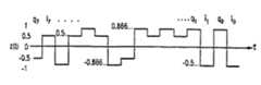従って、そのi(t)信号は半分の正弦波形、すなわち、各奇数チップに対して1つの半分の正弦波形のシーケンスを有する。各半分の正弦波形は、”1”チップに対しては正であり、”0”チップに対して負である。すなわち、