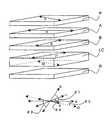 図3に示す位相差板は、ポリマーフイルムからなる光学異方性層B(B)、垂直配向膜(1)およびディスコティック液晶性分子(2)を含む光学異方性層A(B)を、この順に積層した構成を有する。光学異方性層Aの遅相軸(a)と光学異方性層Bの遅相軸(b)との同一面内での角度は、60゜である。