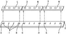 また、従来の多光軸光電スイッチは、かりにリフロー工程をなくしても、光軸ずれを招く別の要因があった。即ち、図5に示すように、従来の多光軸光電スイッチでは、複数の光電素子1が一列に配列された長尺状の基板2に対し、例えば、3つの光学ブロックL,M,Nが、その基板2の長手方向に並べて取り付けられ、各光学ブロックL,M,Nに備えたレンズ部3と各光電素子1とが対面する構成となっいた。また、基板2には、その両端と長手方向を概ね3等分した位置とに、位置決め孔A〜Fが形成され、ここに、各光学ブロックL,M,Nから突出した位置決め用ボス5が係合し、基板2と光学ブロックL,M,Nとが位置決めされる。