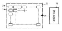 尚、前述したように電磁波エネルギを用いて集積回路装置を作動させれば、集積回路装置は自ら内部電源を生成して装置本体1の校正データを取得するので、複数の集積回路装置を校正する場合には、例えば図6に示すように複数の集積回路装置20を一括して恒温槽21内に収納し、各集積回路装置20をそれぞれ所定の温度環境下におき、外部の校正制御部22から、これらの複数の集積回路装置20に対して一斉に電磁波エネルギを給電して各集積回路装置20をそれぞれ作動させるようにすれば良い。