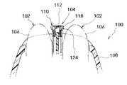 そして頭部48には、ガイドアーム54の上面に開口する挿入孔56が形成されている。この挿入孔56の内壁面の断面形状は、粗剃り外刃24の幅狭部分の断面外形形状と略同寸に形成されており、粗剃り外刃24の幅狭部分が挿入可能となっている。