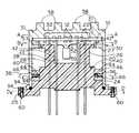 同じく蓋部材20の本体外周部には、一または複数(図例では4つ)の凹部26が形成され、各凹部26に半導体デバイス40が嵌め込まれており、この嵌め込み状態で半導体デバイス40の外側面と蓋部材20の本体外周面とが略合致した状態になっている。各凹部26の上方には切欠27が形成され、この切欠27を通じて半導体デバイス40の各端子(図例では3本の端子)42が上方に突出した状態にあり、これらの端子42が前記制御回路基板10上の回路に接続されている。すなわち、半導体デバイス40も他のデバイス12と同様に制御回路基板10上に実装されている。これら半導体デバイス40の下部には舌片44が形成され、この舌片44にこれを水平方向に貫通するねじ孔46が形成されている。