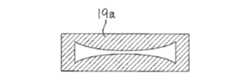 このシェーディング処理は、ガラス板19aの表面に、対向する一対の三日月形をシルク印刷することにより行われている。このシルク印刷によるシェーディング処理により、ガラス板19aにおけるレーザー光が透過する領域は、中央部において狭く、両端部に向かうにつれて広くなり、光透過量がガラス板19aの全面で略均一になっている。また、このシルク印刷は、清掃時などに剥げ落ちることを防止するため、ガラス板19aのハーフミラー13に対向する面に施されている。さらに、ガラス板19aの表面は、反射光を低減させるために艶消し処理が施されている。