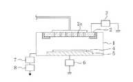 ターボ分子ポンプ7及びドライポンプ8を駆動して反応室1の内部を所定の圧力に減圧しておいてから、ガス導入口2aから反応室1の内部にエッチングガスを導入すると共に第1の高周波電源3から上部電極2に第1の高周波電力を供給すると、反応室1の内部において、エッチングガスからなるプラズマが発生する。