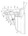 また、補助ステップ(33)の前部側近傍で、メインステップ(32)の下面近傍には、断面略凹字型の角柱型ステー(36)の上面がボルトなどの固定手段によって取り付けられており、そのステー(36)の下面は、図12で示すフロントアクスルケース(37)に取り付けられている。なお、フロントアクスルケース(37)は車体フレーム(4)の前部に連結部材(37a)を介して固定される。