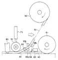 接合装置300は前記実施例の機器である。接合装置300は台車310の昇降台320に設置している。昇降台320は台車310の四角形の枠の左右の柱にガイドされて昇降する。昇降台320の上部には上下方向に回転する座330がある。この回転座330の上面に水平方向に移動する水平移動座340がある。水平移動座340の上面には上下動する上下動座350がある。この上下動座350、350に前記実施例の機器を設置している。すなわち、一方の上下動座350に丸鋸61、その駆動装置、吸引口65、排除板66、センサ等を設置している。他方の上下動座350にローラ70、93b、93c、93d、ガイド95、回転工具80、その駆動装置、センサ等を設置している。台車310の上部にドラム90を設置している。