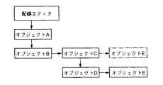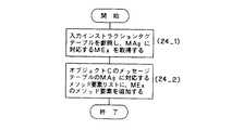 さらには、第2のオブジェクトが、第3のオブジェクトを生成する手段と、を有し、上記のようにして第1のオブジェクトから第2のオブジェクトに向けてメッセージが発行された際に、第1のオブジェクトから第2のオブジェクトに向けたメッセージを受け付け、そのメッセージの引数である入力インストラクションタグテーブルを参照し、生成した第3のオブジェクトのメッセージに対応する、その第3のオブジェクトのメソッド要素リストに、その第3のオブジェクトのメッセージに対応づけられた第1のオブジェクトのメソッドに関するメソッド要素を追加するものであることも好ましい形態である。