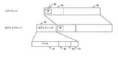 さらに階層パケットデータ化したデータ42と43、及び44と45は、それぞれ先頭にUDPヘッダ46、47を付与してUDPパケットデータを構成する。またさらにUDPパケットデータ化したデータ46と42と43、及び47と44と45は、それぞれ所定のサイズ、例えば1480バイト毎に分割され、それぞれ先頭にIPヘッダ48、49、50を付与してIPパケットデータを構成する。図3の例では、データ46と42と43から構成されるUDPパケットデータのサイズが1480バイトを越えるため、43の階層データ(1)が43−1と43−2に分割されて、IPパケットデータ化される状態を示している。