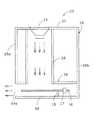 また、正面板12のスピーカ本体13の下部には、円状の開口部33を有し、開口部33からスピーカボックス32の内部に向かって円筒状の筒34を設けている。更に、案内筒18と筒34を仕切ると共に、案内筒18を固定し、背面波の回り込みをなくす盲板21及び仕切板35を備えている。この仕切板35は、スピーカ装置10の仕切板20aと同様に形成している。