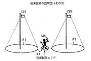 図16は従来技術の説明図(その2)である。この方法は、図中の利用制限エリア#4にて移動通信の利用ができないようにするために、基地局CS1,CS3のエリア#1、#3を利用制限エリア#4にかからないようにサービスエリアを構成する方法であるが、特定の場所を確実に利用制限するには、エリアの構築の自由度が狭まる他、一度構築してしまったエリア内に後から利用制限の要求があった場合には、その周辺のエリア設計をやり直す羽目になり、変更規模が大きくなる。