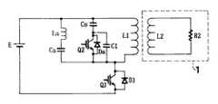 図1に示す回路では、追加されたコンデンサCsと第2のスイッチング素子Q2(IGBT)が誘導加熱用ワークコイルL1に並列接続されている。また、コンデンサCsとスイッチング素子Q2の直列回路の接続点より、コンデンサC1(第2のコンデンサ)がスイッチング素子Q2と並列接続されている。Dsはスイッチング素子Q2に寄生のダイオードを表している。