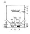 図6に示すように、この蒸着重合装置101は、気密状態を保持可能な処理室102を有し、この処理室102は、図示しない外部の真空ポンプその他の真空排気系に接続されている。そして、処理室102内の上部には、高分子薄膜を形成すべき基板103が基板ホルダ104によって下向きに保持され、また、基板ホルダ104の背面側には、基板103を所望の温度に加熱するためのヒーター105が設けられている。
