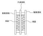 空間光変調器である液晶パネル4には、例えば、TFTを用いて液晶を駆動する液晶パネルあるいは非線型素子を用いて液晶を駆動する液晶パネルを用いることができる。これらの場合、液晶材料にはネマチック液晶が使用されており、図2のように共通基板を境にネマチック液晶を両側に配置し、それらを駆動基板で挟んだ構造とし、一方の液晶の配行を利用して位相変調を、他方の液晶の配行を利用して振幅変調を行わせるものとする。