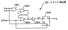 まず、アンドゲート1601は信号bおよび信号cの論理積を出力する。次に、ノアゲート1603および1604からなるRSフリップフロップは、アンドゲート1601の論理積をR信号として入力するとともに、信号STRをS信号として入力する。インバータ回路1605は、ノアゲート1604の出力を反転して信号U1として、Dフリップフロップ1606のD入力端に供給する。このDフリップフロップ1606は、信号STRでリセットするとともに、信号bの立ち下がりにおいて、その直前での入力端Dのレベルを信号dとして出力するものである。
