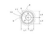 図5に示す実施形態は、図4に示す実施形態と同様に、遠位チップ10の嵌め込み穴11を遠位チップ10の軸心部Pから偏心した位置Qに設けたものである。が、前記嵌め込み穴11の形状、詳しくは水平断面形状を多角形としている。