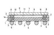Therefore, conventionally, in order to solve the above-described problems, a method of mounting a semiconductor chip via a sub-circuit board instead of directly mounting on a circuit board (main circuit board) has been considered. . FIG. 10 shows such a conventional semiconductor device (in which a semiconductor chip is mounted on a sub-circuit board). The sub circuit board 1 is formed by laminating a plurality of