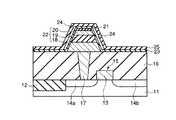まず、図3に示すように、半導体基板11内に素子分離を行うためのSTI(Shallow Trench Isolation)構造の素子分離領域12が形成される。その後、半導体基板11上にゲート電極13が形成され、このゲート電極13を挟むようにソース/ドレイン拡散層14a,14bが形成される。このようにして、MOSFET15が形成される。  First, as shown in FIG. 3, an