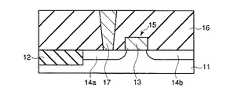 次に、図4に示すように、半導体基板11及びMOSFET15上に層間絶縁膜16が堆積され、この層間絶縁膜16の上面が例えばCMP(Chemical Mechanical Polish)で平坦化される。この層間絶縁膜16の材料としては、例えば、BPSG(Boron Phosphorous Silicate Glass),P−TEOS(Plasma-Tetra Ethoxy Silane)などがあげられる。次に、層間絶縁膜16内に、ソース/ドレイン拡散層14aに接続するコンタクト17が形成される。  Next, as shown in FIG. 4, an