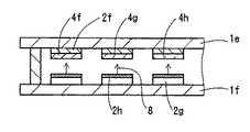 図5は本発明に係るリフトオフ方法を適用した電界放射ディスプレイ装置の断面模式図である。基板1f上には多結晶シリコンよりなる給電々極2gの上に個別化されているダイヤモンドからなる電極2hがマトリクス状に配列されており、基板1e上のITOからなる電極層2f上のマトリクス状に配列されている蛍光体層4f、4g、4hと真空中で対向している。対向する電極2fと電極2hに印加された電圧により電界放射された電子8が各蛍光体に衝突し、それぞれR、G、B色を発光する。