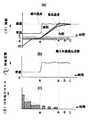 次いで時点Aを過ぎると、溶けた部位と未解凍の部位を混在したまま、食品は急激にマイクロ波を吸収するようになる。既述したように解けた部位(水分)は凍った部位の数倍〜数十倍もの誘電損失を示すため解けた部位と未解凍の部位とで温度差が大きくなる。そこで図7(c)に示すようにマイクロ波出力は全出力の数分の一にまで低減され温度の高い部位から低い部位へ熱伝導させながら加熱を続行する。加熱室内の温度および湿度は図7(a)および図7(b)に示すようにこの時点Aより食品の加熱完了状態に調整して蒸気により食品の表面を包み込むように加熱して内部の温度が上昇するのを助ける。さらに図7(a)で表面温度が加熱完了温度に達しても(時点B)内部の温度が低い場合には図7(c)のように時点Bでマイクロ波照射を終了し、図7(a)、図7(b)のように調温・調湿を続行して内部の温度が上昇するのを待つ。このようにしてハンバーグやカレーでは端部が過加熱になり硬くなったり煮詰まったりするのを防ぎながら内部まで適温に温めることができる。Then, after the time point A, the food item rapidly absorbs the microwave while the melted portion and the unthawed portion are mixed. As described above, the melted portion (moisture) exhibits a dielectric loss several times to several tens of times that of the frozen portion, so that the temperature difference between the thawed portion and the unthawed portion increases. Therefore, as shown in FIG.7 (c), the microwave output is reduced to a fraction of the total output, and heating is continued while conducting heat conduction from the high temperature part to the low part. Temperature and humidity in the heating chamber7 (a) and7 (b) are shown as internal temperature was heated to the point to adjust the heating completion status of the food from the A wrap around the surface of the food by steam Help rise. Further ended microwave irradiation at B as shown inFIG. 7 (c) if FIGS.7 (a) in even surface temperature reaches the heating completion temperature (point B) temperature inside is low, FIG.7 (a), waiting for the temperature inside rises to proceed with moisture in temperature adjustment, adjustment as in Figure7 (b). In this manner, the inside of the hamburger or curry can be heated to an appropriate temperature while preventing the end from being overheated and becoming hard or clogged.