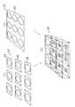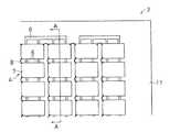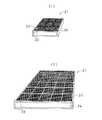 図28は、図27のソーラーパドル2のセクションS28(ソーラーパネル部)を拡大して示す正面図である。図28に示すように、ソーラーパネル3は、表面に数多くの太陽電池セル4が接着されている。図29は、さらに図28のソーラーパネル3のセクションS29を拡大して示す正面図である。図29に示すように、各太陽電池セル4はマトリックス状に配置され、発生電力を取出すための電流経路6によって互いに接続される。また太陽電池セル4はカバーガラス7が設けられ、カバーガラス7が宇宙線などによって帯電(チャージアップ)することを防止するために、人工衛星1の衛星グランドへとつながるグランド用配線8が、各カバーガラス7にそれぞれ接続される。