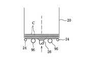 図5に示されているように一対の吸着パッド26の両側には一対の支持ローラ96が配置されている。これら支持ローラ96はカード繰出し方向に沿って延び、且つ、それらの軸線はホッパ20の傾斜に合わせて傾斜されている。