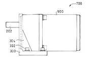 従って、平行ギヤヘッド200とその取付体300は、直交変換機構を有するギヤドモータ600の構成部品として使用できるばかりでなく、図7、図8に示すように、取付面F1とF2とが同一の取合寸法を有していることを利用して、モータ500を直接連結する(モータ軸502と後段第1歯車210を噛み合わせる)ことにより、平行軸減速機構を有するギヤドモータ700の構成部品としても使用可能であり、部品の共用化による開発コストの低減を図ることができる。なお、図7は本発明の実施の例に係る平行ギヤヘッド200及び取付体300を使用した平行軸減速機構を有するギヤドモータ700の平面図、図8はその正面図である。