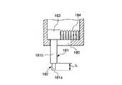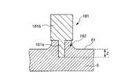 このようなアンダーフィル材6の粘度は、常温で、0.5〜15Pa・s程度であるのが好ましく、2〜10Pa・s程度であるのがより好ましい。アンダーフィル材6の粘度を前記範囲とすることにより、少量であっても適正な量を安定して、後述するピン181の先端部(小径部181a)に付着、保持させることが可能になる。これに対し、アンダーフィル材6の粘度が低すぎると、十分な量をピン181の先端部に付着、保持させることが困難となり、一方、粘度が高過ぎると、過剰な量のアンダーフィル材6がピン181の先端部に付着、保持されるおそれがある。