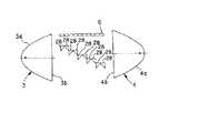 前記パラボラリフレクタ3、4は、前記光源1、2を各々包囲すると共に前記光源1、2からの光を反射するための反射板3a、4aと、反射された光が出謝される開口3b、4bを有してなり、該パラボラリフレクタ3、4の間に複数の前記プリズム5を介在して各々の開口部3b、4bが対向して配置されている。