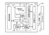 図7において、非接触型のICカード(以下、単にICカードと呼ぶ)100は、データ読み出し/書き込み装置(以下、リーダライタと呼ぶ)101との間で電波の授受を行うアンテナ回路部102と、データの変復調を行う変復調回路部103と、シリアルデータをパラレルデータに変換すると共にパラレルデータをシリアルデータに変換する入出力回路部104と、E2PROMで形成された不揮発性メモリ部105とセンスアンプ回路部106を備えたメモリ回路部107とを備えている。更に、ICカード100は、入出力回路部104及びメモリ回路部107の制御を行う制御回路部108と、アンテナ回路部102で受信した電波を整流して各回路に電源として供給する内部電源回路部109と、入出力回路部104、メモリ回路部107及び制御回路部108を接続するバス110とを備えている。