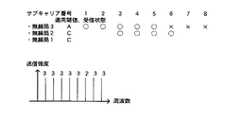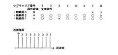 図8によれば、先頭のパケットの送信先無線局3については閾値Bを用い、無線局2及び1については図7と同じ閾値Aを用いている。無線局3については、サブキャリア7及び8が閾値Bを下回っていることが分かる。従って、無線局3へ送信する先頭のパケットは、当該無線局3で受信強度が弱くないサブキャリア1〜6が割り当てられる。