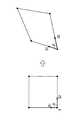 また、図3に示すような座標系を考えることもできる。すなわち、四角形で構成された各ポリゴンデータについて、1点(図2では左下の点O)を原点とし、点Oを含む2辺における歪む成分を、それぞれ第1主歪みS1、第2主歪みS2と、2辺で形成された歪みにより生じたズレ角度をθとして表す方法である。この場合、(数3)で求めた歪み成分行列Sとの間には、(数4)に示すような関係が成立する。