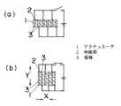 As actuators used in microminiature devices, those using piezoelectric elements and those using electrostrictive polymers are known. In the former, electrodes made of a conductive stretch material are arranged on both sides of a sheet-like piezoelectric material that has been polarized in the thickness direction, and stretched by the piezoelectric reverse effect. By applying a voltage having the same polarity as the polarization direction, It has the property of extending in the polarization direction and contracting in the orthogonal direction. In the latter, electrodes made of a conductive stretch material are placed on both sides of a stretchable portion made of a sheet-like insulating stretch material such as silicon rubber or acrylic and stretched by dielectric polarization. And has a property of extending in the direction orthogonal to each other.