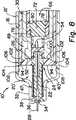 図1及び図2に戻る。プランジャ(80)は、平行で互いに離れた内壁(84)と外壁(86)を有する。これらの壁は、強度の安定性に鑑みて管状であることが望ましい。内壁(84)と外壁(86)の後部は、隠れている親指キャップ(88)により接続され、該キャップ(88)はハウジング(12)の後部開口(18)の拡大部(19)にピッタリと受けられる。内壁(84)は、図2Bに示すリム部材(70)の端面(92)に係合する端面(90)まで延びている。内壁(84)は端面(90)が端面(92)に接した状態で、カルプルの開口(68)に接して入るが、取り外し可能なコア部材(72)の如何なる部分にも接しない。