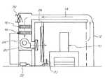 図2は、従来の投影露光装置用の環境制御装置を示す。図において、投影露光装置本体10は、温度制御された空気(14)が循環する環境制御チャンバー12内に収容されている。環境制御チャンバー12内には、投影露光装置本体10内を通過した空気を冷却する空気冷却器16と、この冷却された空気を適正温度まで加熱する空気再加熱機18とが装備されている。投影露光装置本体10の側部には、投影露光装置本体10近傍の空気の温度を検出する温度センサ20が配置されており、この温度センサ20によって検出された温度に基づいて温度コントローラ22が空気再加熱機18を制御するようになっている。