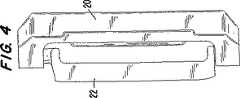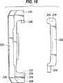 図19に示す第3の好ましい実施の形態において、ケーシング220は、アーム230上に組立体タブ248とアーム228上に凹所232とを有する。それに対応して、インサート222は、一端に凹所234と、他端に組立体タブ246を備えている。もちろんタブ及び凹所の構成は、アーム228及び230で反転することができる。組立の順序は、タブ246を凹所232の深い部分236に挿入するためにインサート222を傾斜することから始まる。これによりタブ248がインサートの当接部242を越えることができ、凹所232に受けられる。インサート222がまっすぐになると、タブ246は、深い凹所236内に配置され、ケーシング220及びインサート222の本体が平行な関係になる。次にインサート222は、タブ246が凹所232の浅い部分238に配置され、固定当接部240に当たるようにケーシング本体220に対して外側に移動される。同時にタブ248は、固定当接部242にあたる。この方法において、タブ246及び248は、タブが当接部240及び242にそれぞれ当たるように凹所232及び234にかみあうように受けられる。ケーシング及びインサートは、互いに向かうように及び互いに離れるように移動することを除いてどの方向に移動することも拘束される。ケーシング120とインサート122との間に形成された空隙には、部品を所定の位置に固定するためにエラストマーが上述したように間に配置される。