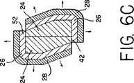 図4〜図7は、ブレードが切断されるべき組織を挟むときの取りうる種々のブレード形体を断面で示している。まず最初に図4を参照すると、図4Aは、ブレードを閉じるときに、ブレードがまず最初に切断されるべき組織に接触した状態でブレードを示している。各ブレードは、剪断面36及び切れ刃34を有している。各ブレードはまた、内側又は前方組織接触表面又は縁38を有している。内側ブレード要素24は、各ブレードの切れ刃及び剪断面を構成している。内側ブレードは又、本質的にブレードの切断長さ全体にわたり切れ刃に沿って延びる前方縁又は表面42を有する。内側ブレード要素の外面及び後方縁は、絶縁材26で覆われている。絶縁材26は又、内側ブレード要素26の後方縁を越えて延びて、絶縁材の張出しリップ52を形成している。この張出しリップは、内側ブレード要素の前方縁42の幅とほぼ同一又はこれよりも僅かに大きい幅を有している。