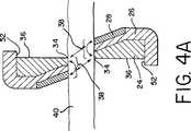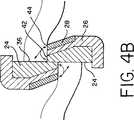 図4Cは、ブレードを完全閉じ位置で示している。この位置では、絶縁材料の張出しリップ52は、向かい合ったブレードの内側ブレード要素24の前方縁部42を覆い、本質的に内側ブレード要素24を完全に包囲して組織接触状態から絶縁し、これを通る電流の流れを阻止する。