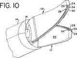 外側ブレード要素28は好ましくは、薄い例えばステンレス鋼又はアルミニウムのような金属製のプレート又はストリップである。外側ブレード要素28の前方縁44は、内側ブレード要素24の前方表面42から間隔を置いた状態で、全体としてこれと平行に組織接触面38に沿って延びている。図3の縦断面図に示すように、絶縁材26及び外側ブレード要素28は好ましくは、ブレードセグメントの最も末端側の端部周りを含むブレードセグメント30の全長に沿って延びている。