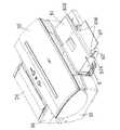 図6に示すように、CD搬送部8を図示の矢印Y方向に真っ直ぐにスライドさせると、該CD搬送部8は記録装置の下ケース99に装着される。この時、図8及び図9に示す下ケース99の両側に設けたガイドレール993に沿って、トレイガイド82の両端の嵌合部822が挿入されることによって、CD搬送部8の位置決めが行われる。トレイガイド82の左右両側の端部には回動可能なフック84が設けられ、該フック84は一方向に付勢されている。CD搬送部8は、スライドさせて所定位置まで挿入されると、ある部位に突き当たり、それ以上挿入されなくなる。そして、フック84がガイドレール993のストッパーに作用し、CD搬送部8がスライドしてきた方向にも戻らないようにロックがかかる。