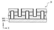 上記構成によれば、積層体に対する溝形成及び溝充填を段階的に繰り返す手法によって、水平方向に互い違いに複数の第1特定構造及び複数の第2特定構造を製作できるので、製造プロセスが容易化あるいは簡略化され、また、積層された部材間における水平方向の位置決め誤差の発生を防止できる。